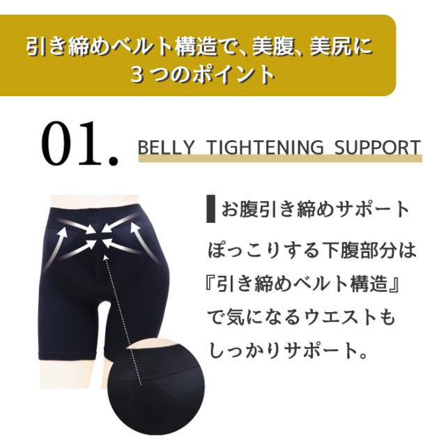 ・下腹を押さえて骨盤周りは内側に引き締める骨盤サポート設計