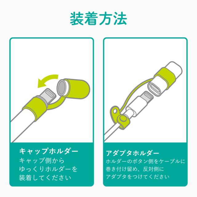 ●キャップの紛失防止をするキャップホルダーと、Lightningアダプタの紛失防止をするアダプタホルダーの2製品入りです。