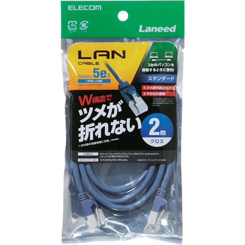【エレコム クロスLANケーブル CAT5E 爪折れ防止 2m ブルー LD-CTXT/BU20の商品詳細】