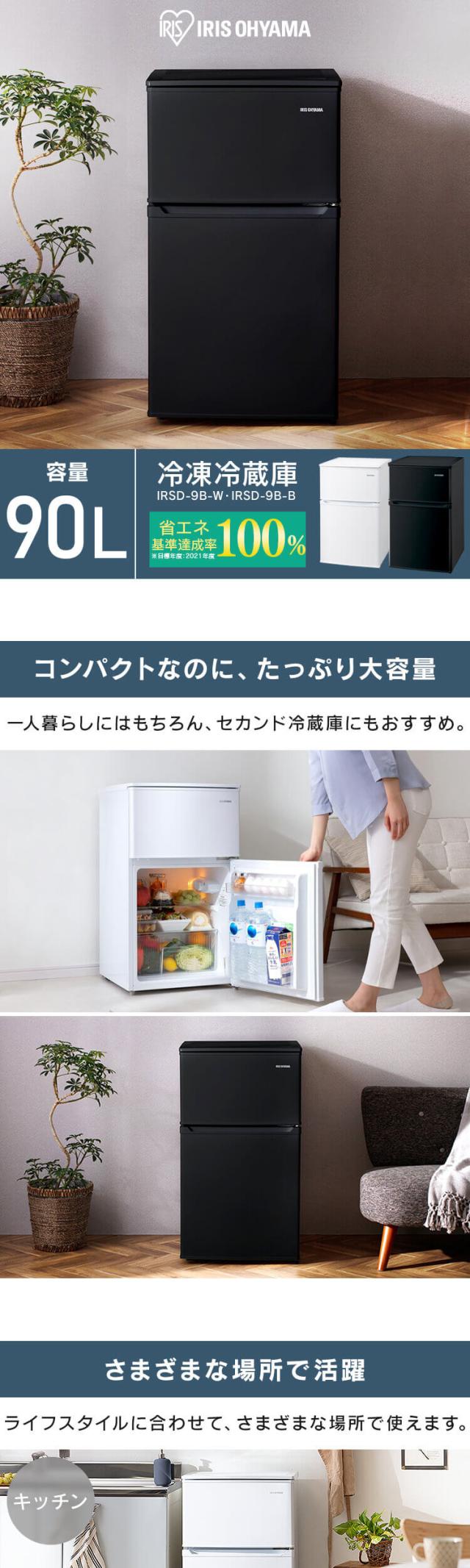 冷蔵庫 小型冷蔵庫 一人暮らし 新生活 冷凍庫 アイリスオーヤマ 冷凍冷蔵庫90L IRSD-9B ホワイト ブラック 2ドア 90リットル 小型 ひとり暮らし 90L ミニ 耐熱天板 単身 1人暮らし 2ドア 静音 省エネ 右開き IRSD-9B送料無料 安心延長保証対象
