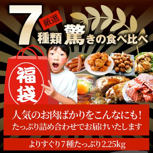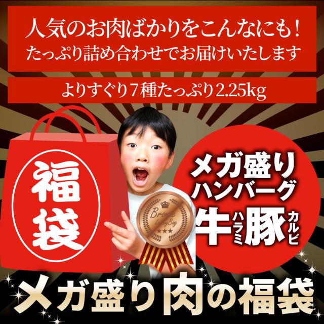 肉の福袋 ブロンズ メガ盛り 総重量2.25kg( 7種 食べ比べ )完全赤字の肉袋!焼くだけ&レンジで簡単調理!ランキング1位&人気のお肉ばかりの豪華セット 福袋 牛肉 焼肉セット 焼肉 ソーセージ ハンバーグ 時短 プレゼント 送料無料 お肉の しゃぶまる