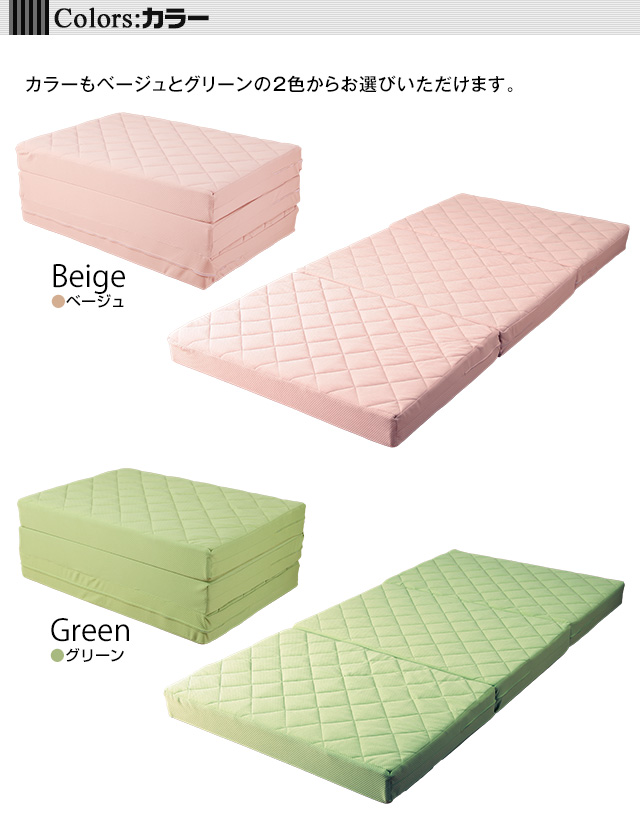 背中にあたる面にキルティング加工がしてあるので敷布団なしで使えます。側生地に吸水速乾効果のある生地を使っています。表面はキルト加工でふっくらさわやか!腰部分のウレタンフォームはやや硬くなっています。腰部にウレタンフォームを使用しているため、さらに硬めで沈み込みにくい構造になっています。厚さが選べる2タイプ。