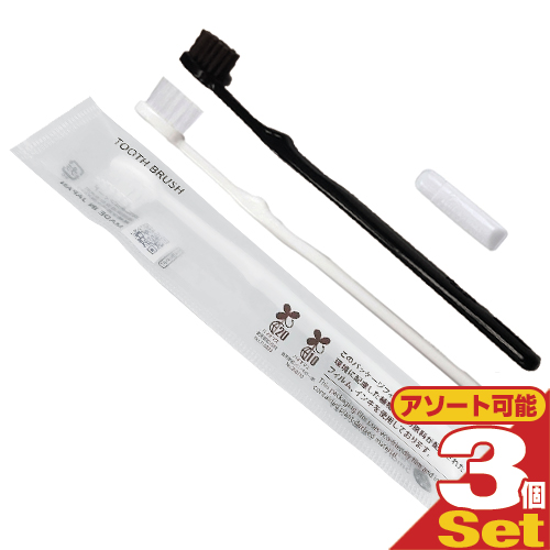 【ホテルアメニティ】【使い捨て歯ブラシ】【個包装タイプ】業務用 日本製 使い捨てハブラシセット チューブ歯磨き粉(3g)付き ×3本セット(2色から選択) - 国産業務用歯ブラシ!