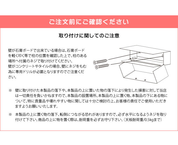 | その他 | 耐荷重 天板:0.5kg 木ネジ付属(2個) |