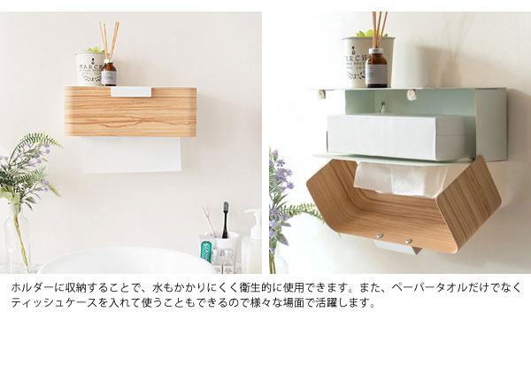 Teal ティール ペーパータオルホルダー (ペーパータオル トイレ収納 壁掛け 洗面所 サニタリー キッチン 後付け 収納雑貨 北欧 木製 ナチュラル ブラウン 生活雑貨 おしゃれ)