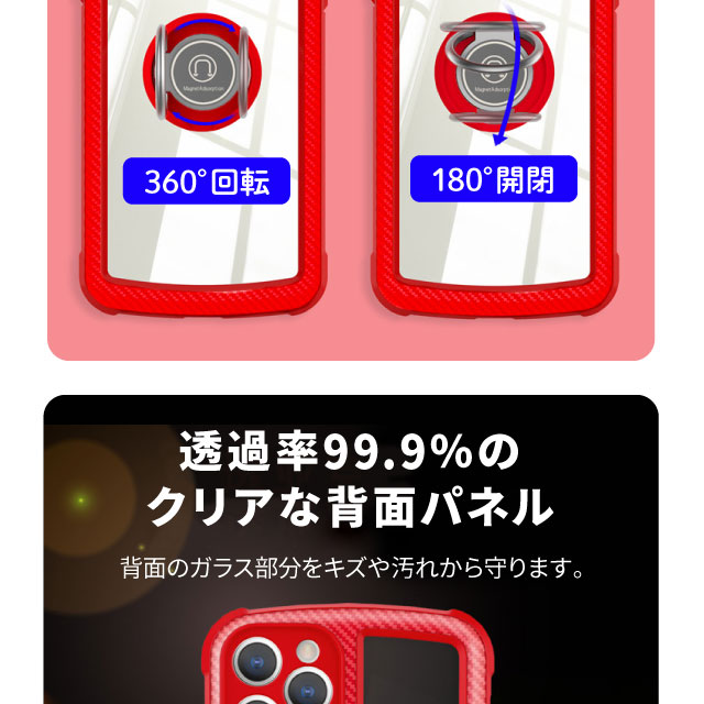・360°回転・180°開閉が可能なスマホリング付属