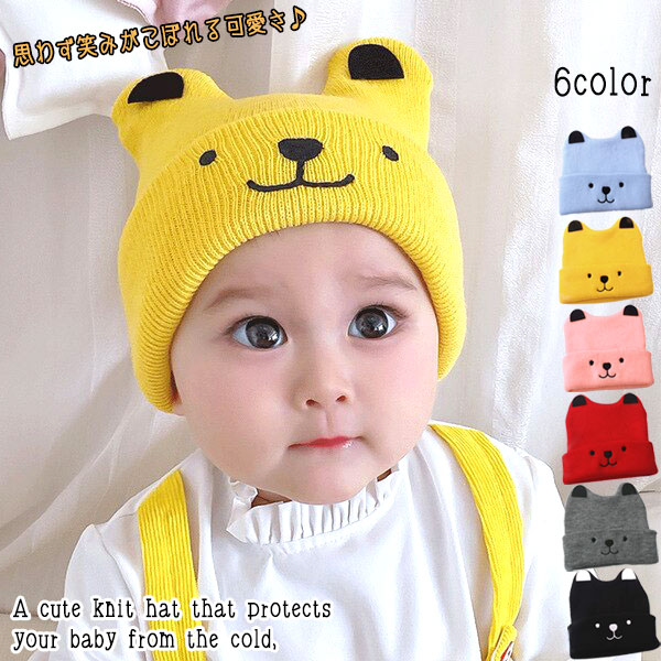 ベビー帽子 ベビー ニット帽 くまちゃん キャップ 帽子 ニット帽 赤ちゃん ニットベビーワッチ 帽子 送料無料
