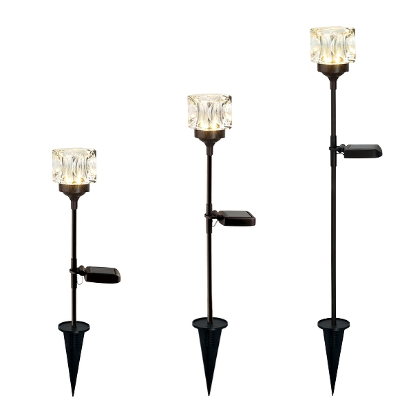 インテリア照明で非常に人気の高いキューブシェードを使用したガーデンライトです。暗くなると自動で点灯し、厚みのあるプレスガラスからキラキラ光りが溢れます。