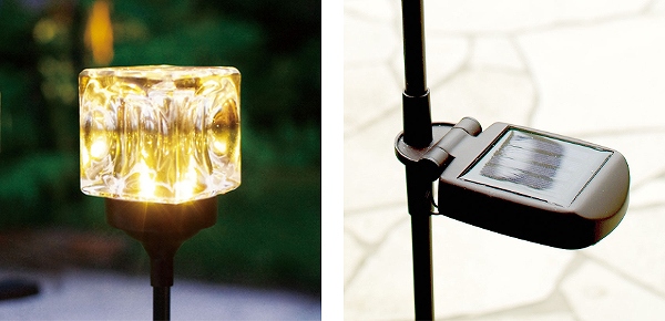 ガーデンライト ソーラーライト キューブスティック ( ソーラー 屋外 充電 ソーラー充電 庭 ライト キューブ ソーラーパネル 自動充電 防水 照明 ガラス おしゃれ )