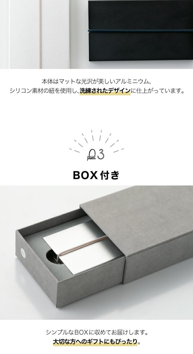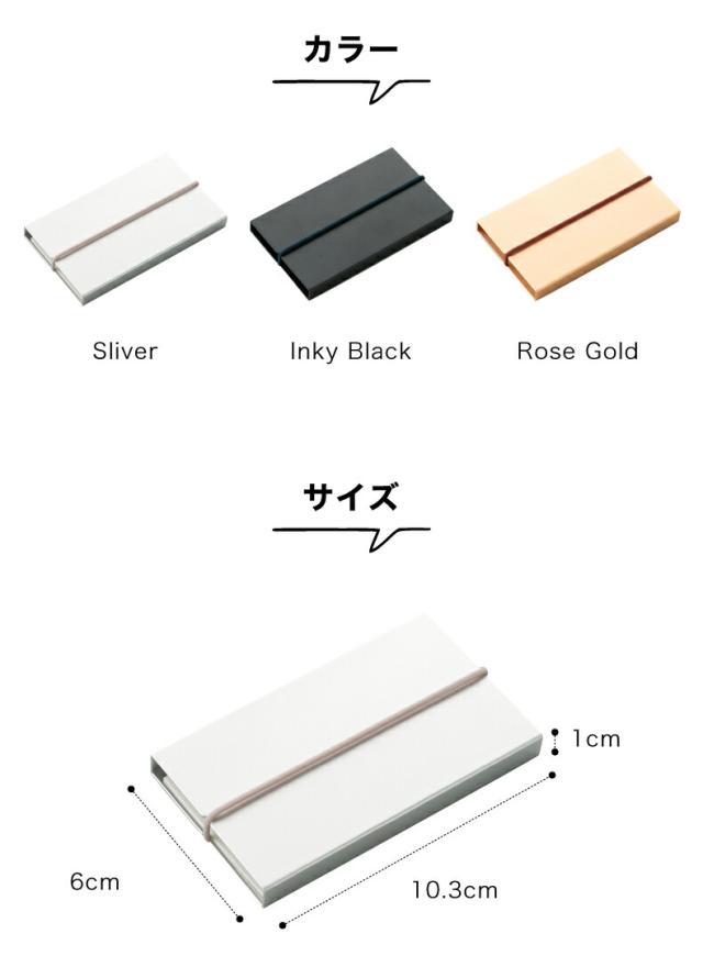 ●蓋ではなくシリコンのバンドを用いて作られた名刺ケースです。