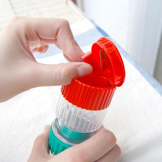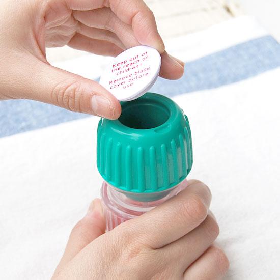 赤いフタを開け、上部に付いている刃のカバーを取り外します。