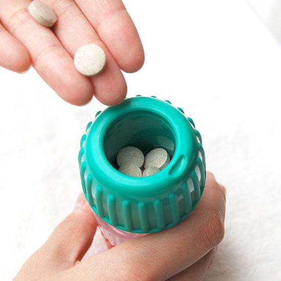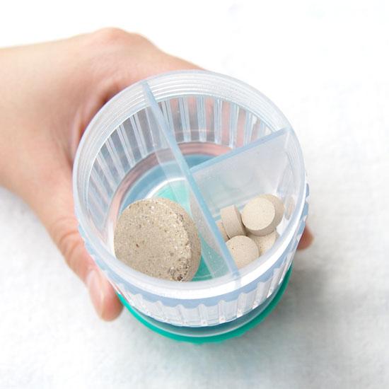 緑のフタについている白いフタを外すと、フタの中にも錠剤をストックする事ができます。