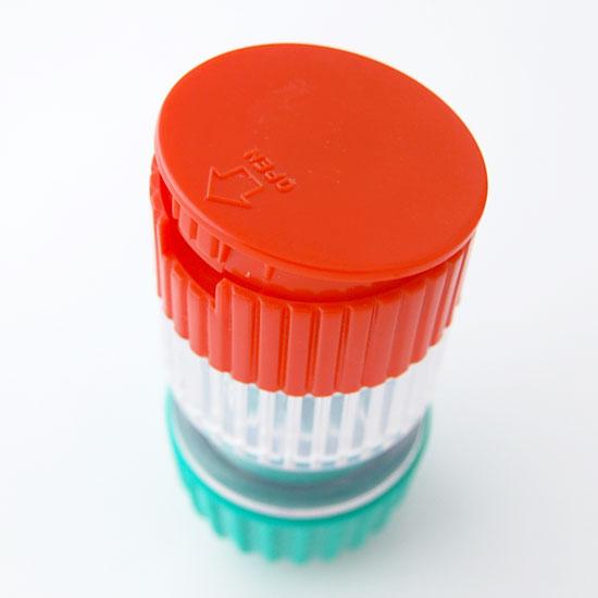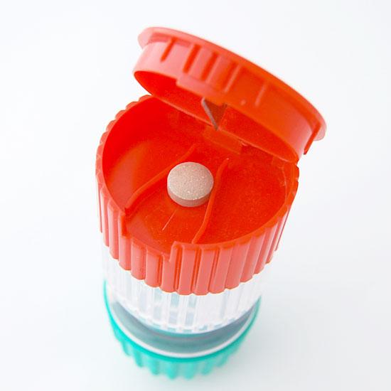 赤いフタを回転して外すと、クリアケース部分に錠剤をストックする事ができます。