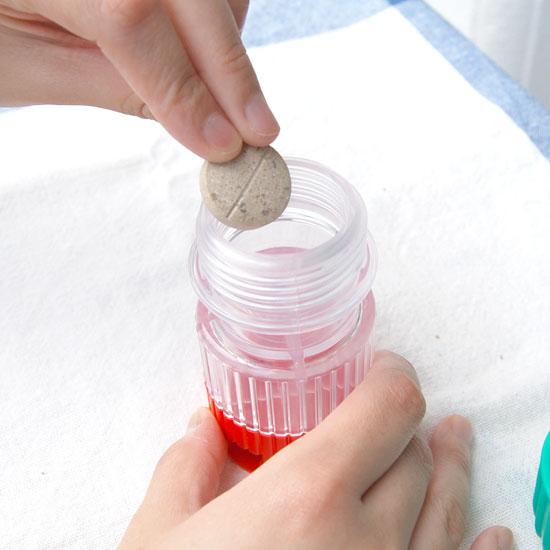 緑のフタを開け、錠剤を本体のクリアケース部分に入れて下さい。