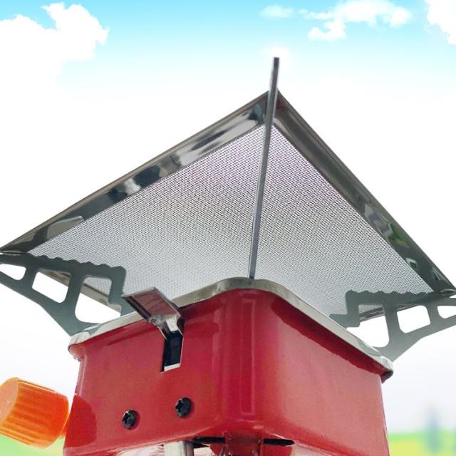 バーナーの五徳の上に網を乗せたら、バーナーの直立した炎をステンレス耐熱網が分散させて、炎を熱に変換します。バーナーの1点集中の直立した炎によるクッカーの焦げ付きを防ぐことができます。