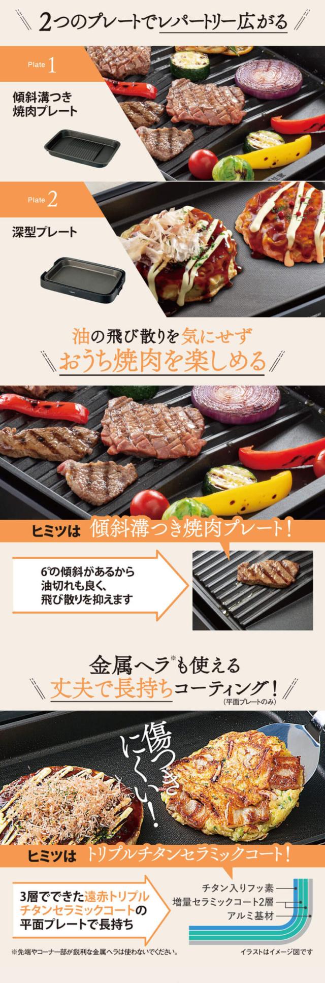 ★ 「深型プレート」「傾斜溝つき焼肉プレート」の2枚プレート。
