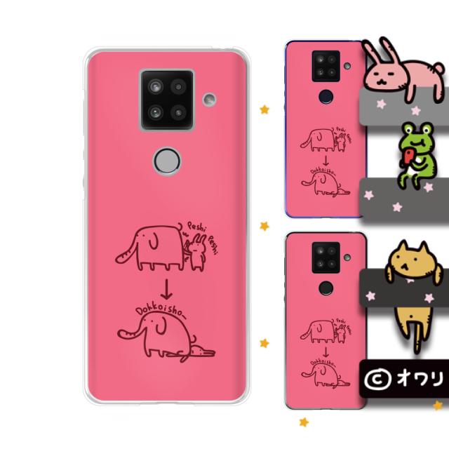 AQUOS sense4 Plus スマホ ケース カバー オワリ 「ゾウと遊ぶウサギ」 ピンク