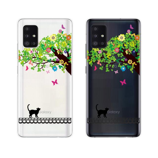 Galaxy A51 5G (au SCG07 / docomo SC-54A) スマホ ケース カバー ネコと樹木の精
