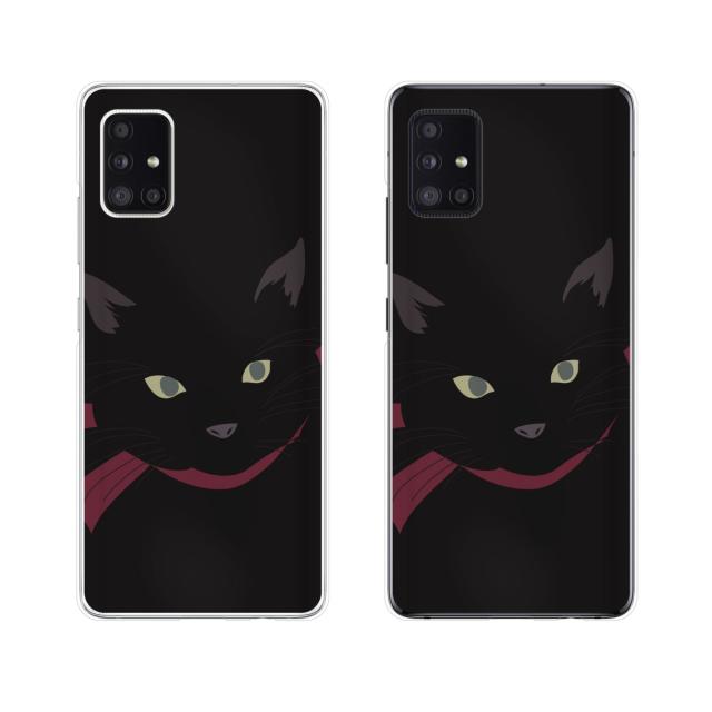 Galaxy A51 5G (au SCG07 / docomo SC-54A) スマホ ケース カバー 猫の顔2 リボン 黒