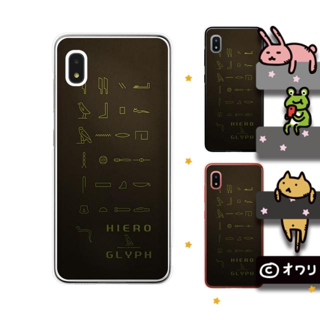 docomo Galaxy A21 SC-42A スマホ ケース カバー オワリ 「ヒエログリフ」 ブラウン