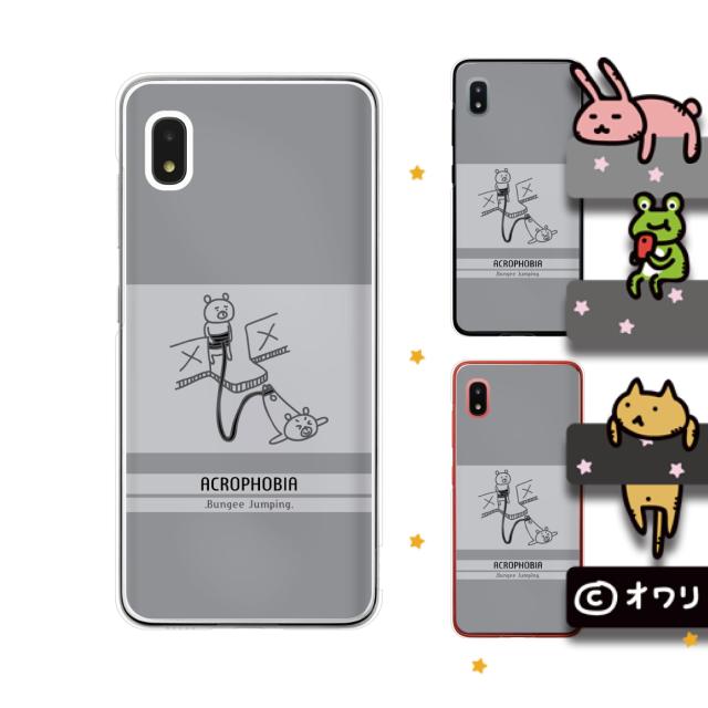 docomo Galaxy A21 SC-42A スマホ ケース カバー オワリ 「クマのバンジージャンプ」 グレー