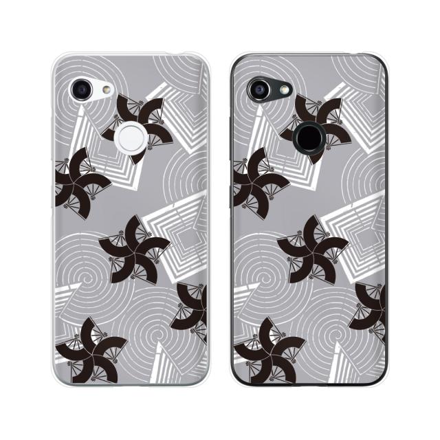 au GRATINA KYV48 スマホ ケース カバー 和柄 扇子 灰色