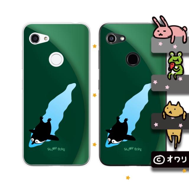 au GRATINA KYV48 スマホ ケース カバー オワリ 「ダイブするペンギン」 グリーン