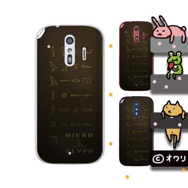 docomo らくらくスマートフォン F-42A スマホ ケース カバー オワリ 「ヒエログリフ」 ブラウン