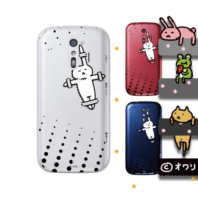 docomo らくらくスマートフォン F-42A スマホ ケース カバー オワリ 「はりつけのウサギ」 透明