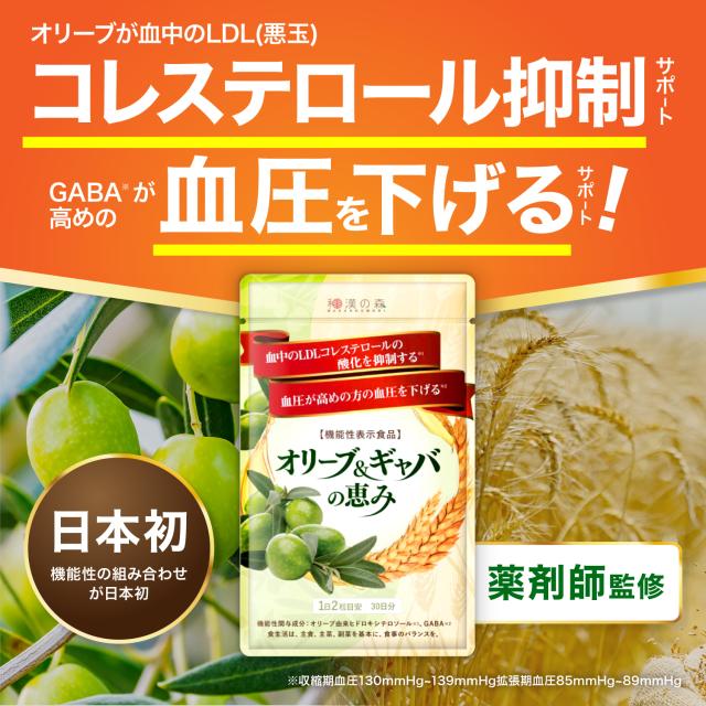・オリーブ&ギャバの恵み は LDLコレステロール と 血圧 をダブルで対策できる。酸化LDLコレステロール を抑制する。1日2粒で簡単に摂取できるサプリ(錠剤タイプ)なので、青汁 ドリンク お茶 と違い簡単手間がかからずで飲みやすい。