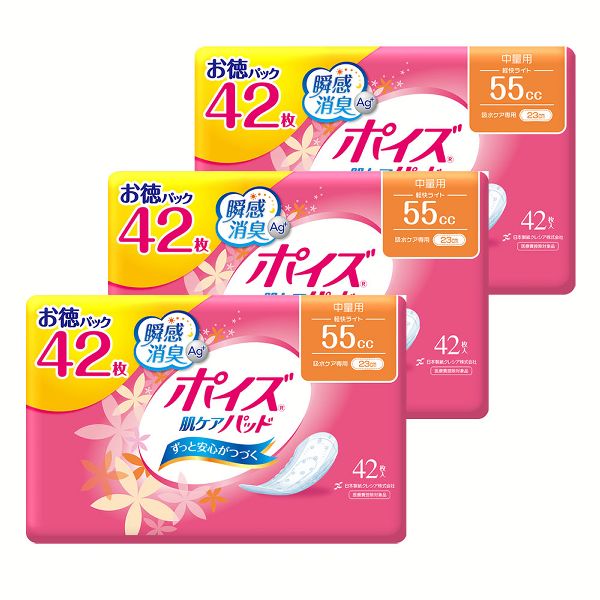 【3個セット】ポイズ肌ケアパッド中量用(軽快ライト)55cc徳42枚 日本製紙クレシア ポイズ ポイズパッド 吸水パッド 尿漏れパッド 吸水ナプキン 肌ケアパッド 尿漏れ 尿モレ 尿もれ 55cc
