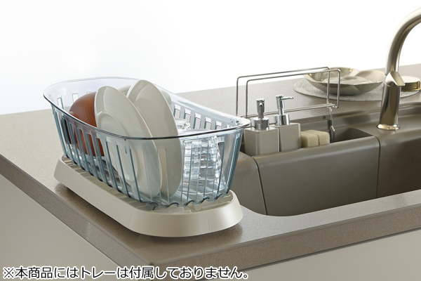 ●どんなキッチンでも存在感を過度に感じさせず、インテリアにマッチするクリアカラーの水切りです。