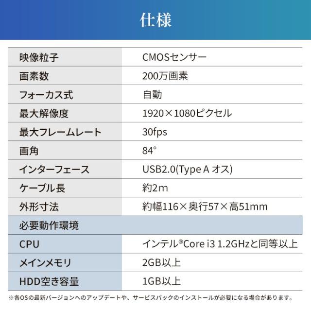 煩わしいインストール作業もなく、USBケーブルを挿すだけで直ぐに使えるWEBカメラ。
