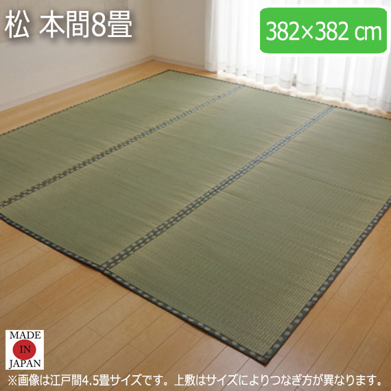 松 本間8畳 382×382cm (ラグマット ラグ カーペット 角型 畳 和 和室 グリーン 緑 国産 い草 高級感 和モダン 日本製 九州 おしゃれ おすすめ 双目織 軽量 手軽 両面 抗菌 防臭)