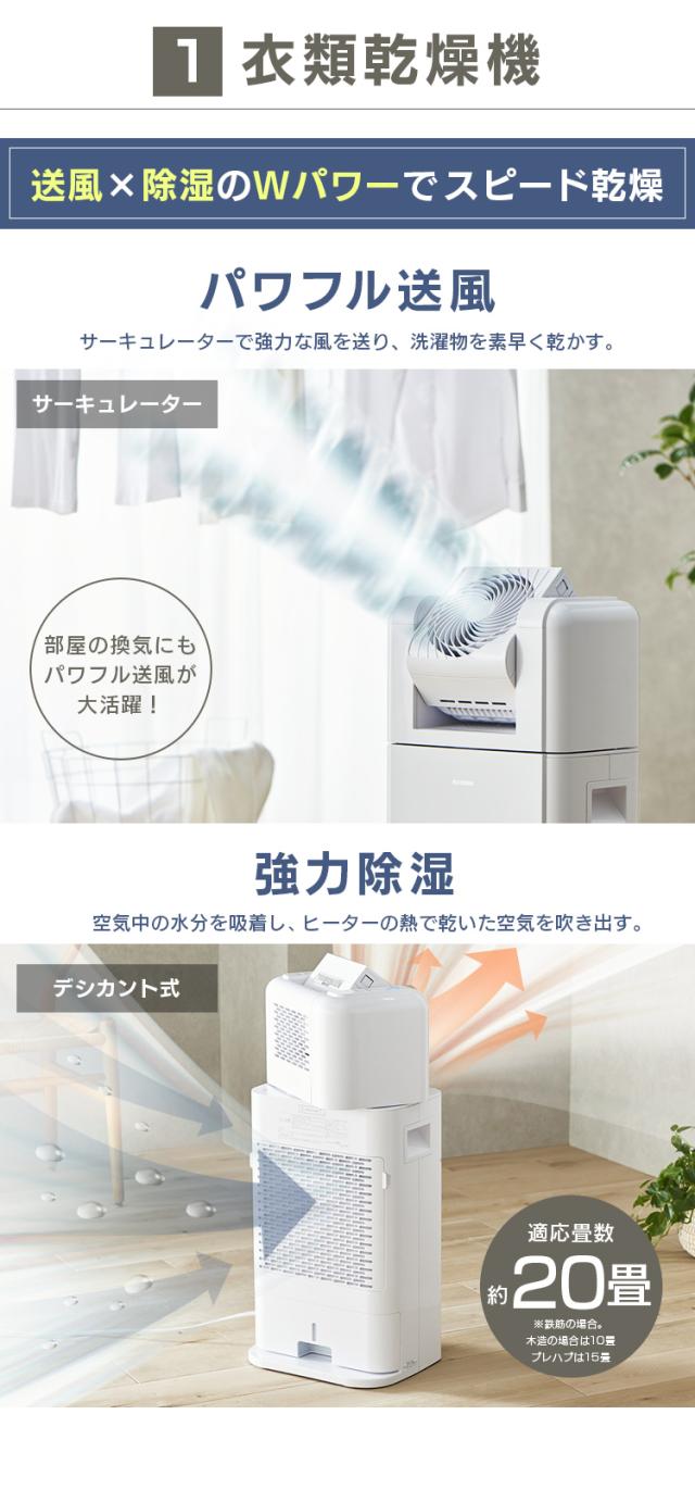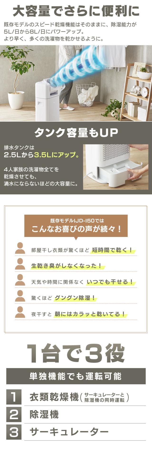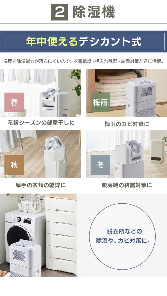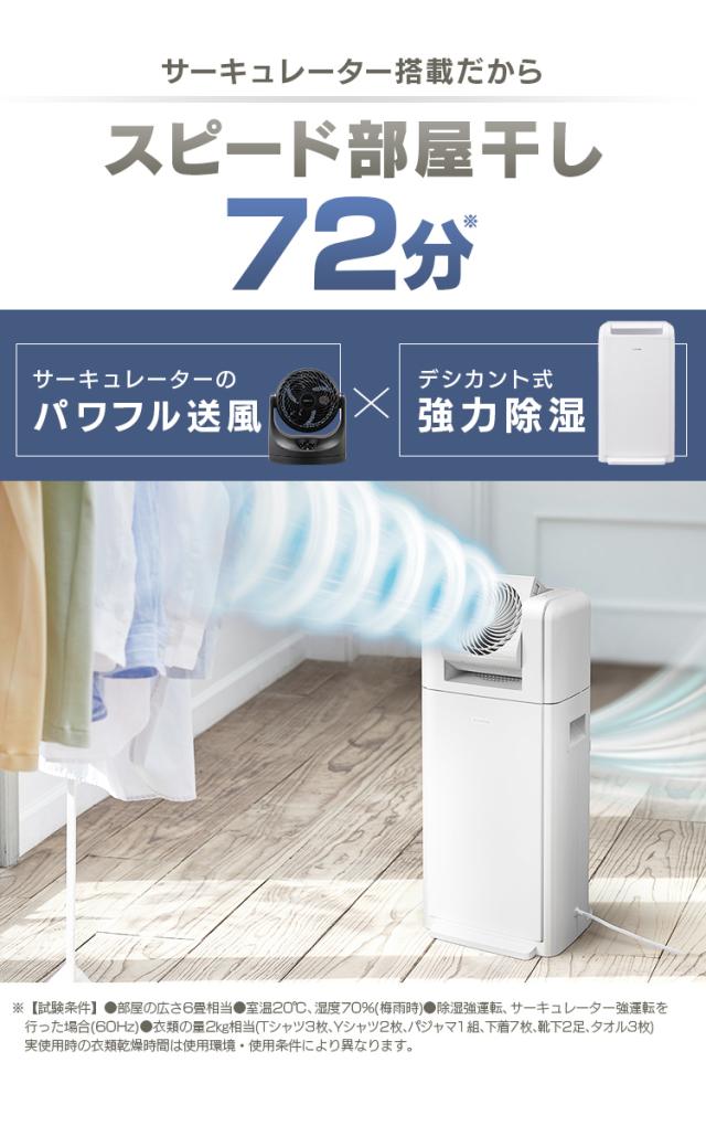 除湿機 サーキュレーター アイリスオーヤマ 衣類乾燥機 衣類乾燥除湿機 デシカント式 室内乾燥機 コンパクト 部屋干し パワフル除湿 最大 20畳 切 タイマー付 8L/日 家庭用 湿気 湿度 梅雨対策 花粉対策 結露 オールシーズン 除湿器 IJDC-K80 *