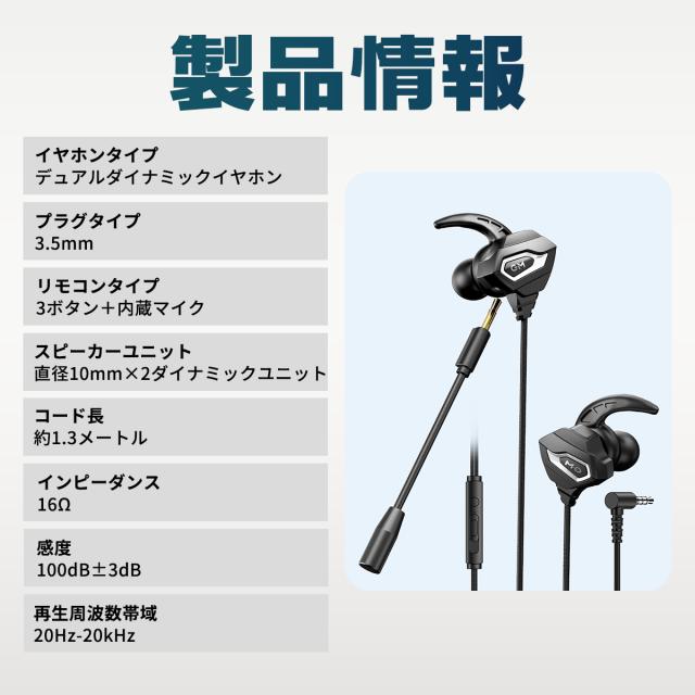 イヤホンタイプ:デュアルダイナミックイヤホン