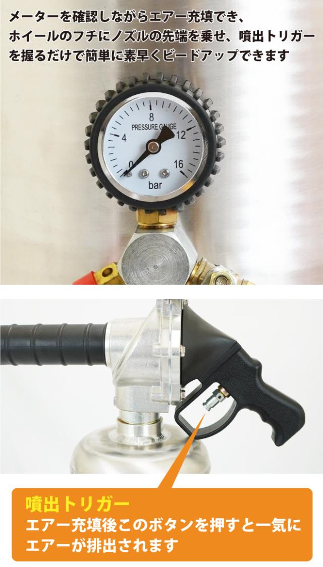 ビードブースター バズーカタイプ 直立型 12L エアービードシーター プッシュボタンバルブ開放式 KIKAIYA