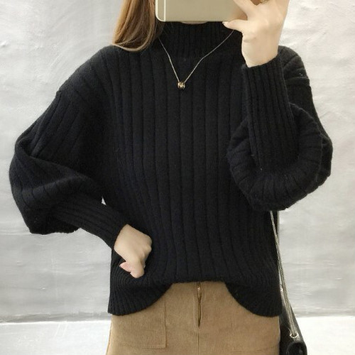 ニット セーター ランタンスリーブ ボトルネック 長袖 レディース