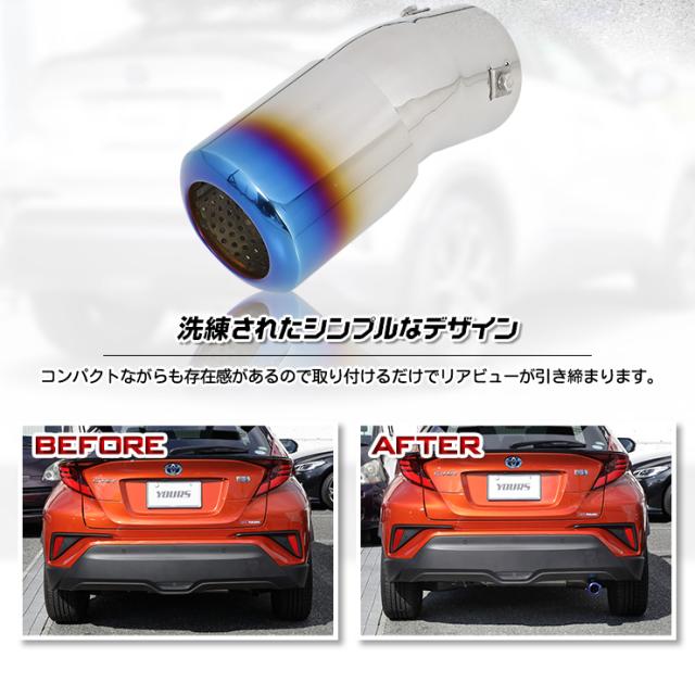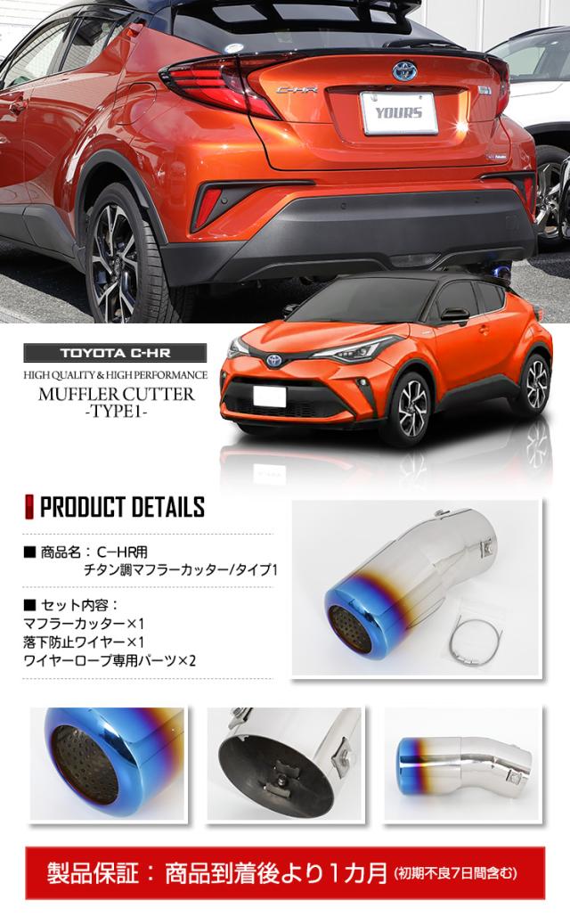 [只今タイムセール開催中]C-HR CHR 前期/後期 チタン調マフラーカッター タイプ1 一本出し 落下防止付 メッキ パーツ アクセサリー ステンレス 外装 ドレスアップ カバー カスタム 簡単取付 トヨタ