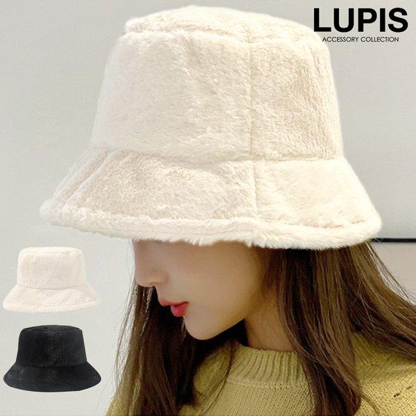 バケットハット レディース ファー フェイクファー 帽子 無地 ブラック ベージュ あったか もこもこ ボリューム LUPIS ルピス