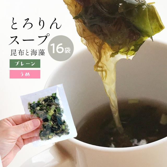 昆布 スープ 16食分 とろりんスープ昆布と海藻 プレーン うめ味 2種から選べる 即席スープの素 個食 ダイエット 保存食 お弁当 agesugi_sgu