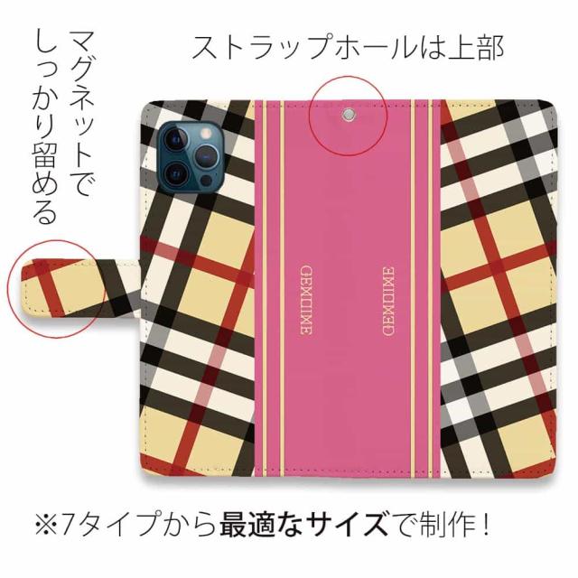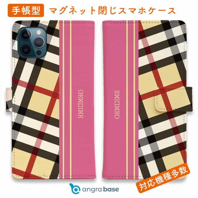 スマホケース 手帳型 カード収納 マグネット iPhone17 Pro Max iPhone Air iPhone16e iPhone16 Pro Max 16 Plus 15 Pro Max Xperia 10 VII Galaxy AQUOS ARROWS Pixel10 XL Genuine チェック柄 ベージュ&ピンク