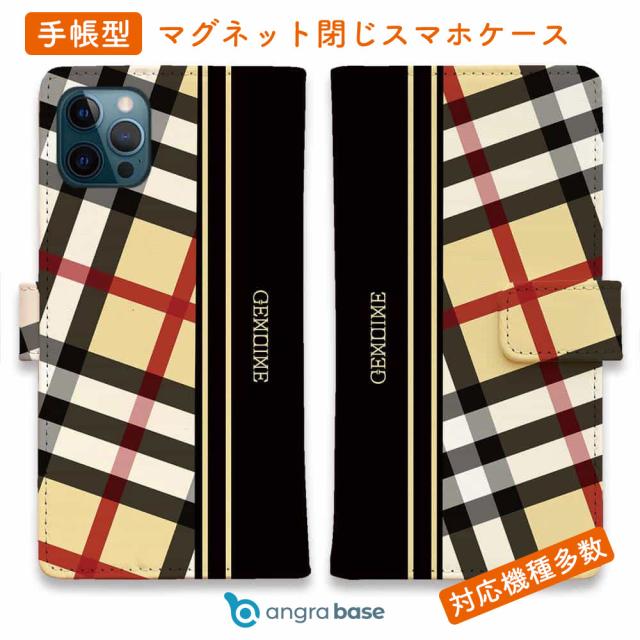 スマホケース 手帳型 カード収納 マグネット iPhone17 Pro Max iPhone Air iPhone16e iPhone16 Pro Max 16 Plus 15 Pro Max Xperia 10 VII Galaxy AQUOS ARROWS Pixel10 XL Genuine チェック柄 ベージュ&ブラック