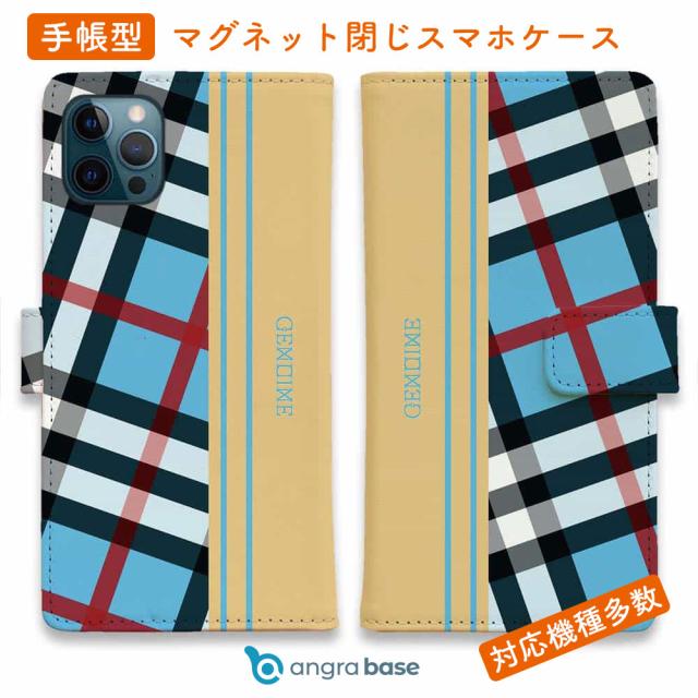 スマホケース 手帳型 カード収納 マグネット iPhone17 Pro Max iPhone Air iPhone16e iPhone16 Pro Max 16 Plus 15 Pro Max Xperia 10 VII Galaxy AQUOS ARROWS Pixel10 XL Genuine チェック柄 ブルー&クリーム