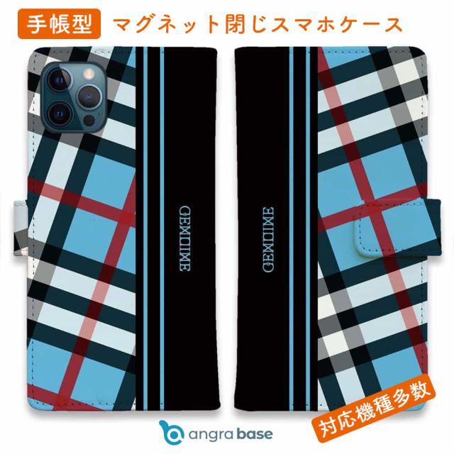 スマホケース 手帳型 カード収納 マグネット iPhone17 Pro Max iPhone Air iPhone16e iPhone16 Pro Max 16 Plus 15 Pro Max Xperia 10 VII Galaxy AQUOS ARROWS Pixel10 XL Genuine チェック柄 ブルー&ブラック