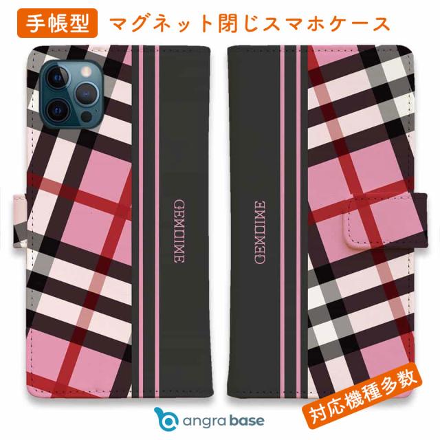 スマホケース 手帳型 カード収納 マグネット iPhone17 Pro Max iPhone Air iPhone16e iPhone16 Pro Max 16 Plus 15 Pro Max Xperia 10 VII Galaxy AQUOS ARROWS Pixel10 XL Genuine チェック柄 ピンク&グレー