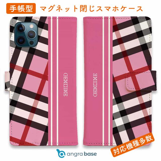 スマホケース 手帳型 カード収納 マグネット iPhone17 Pro Max iPhone Air iPhone16e iPhone16 Pro Max 16 Plus 15 Pro Max Xperia 10 VII Galaxy AQUOS ARROWS Pixel10 XL Genuine チェック柄 ピンク&ピンク