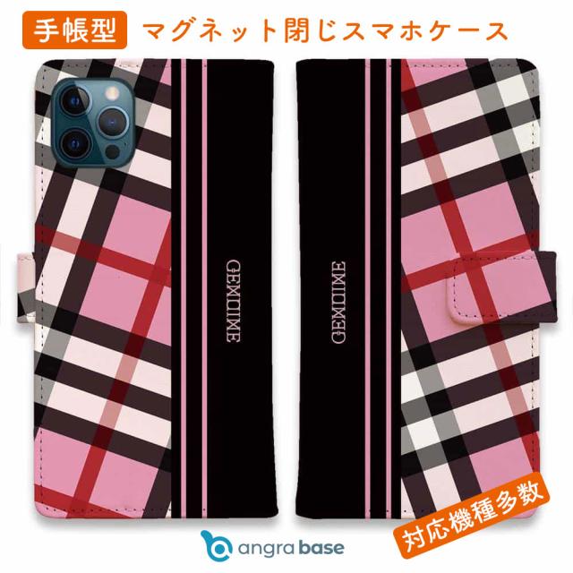 スマホケース 手帳型 カード収納 マグネット iPhone17 Pro Max iPhone Air iPhone16e iPhone16 Pro Max 16 Plus 15 Pro Max Xperia 10 VII Galaxy AQUOS ARROWS Pixel10 XL Genuine チェック柄 ピンク&ブラック