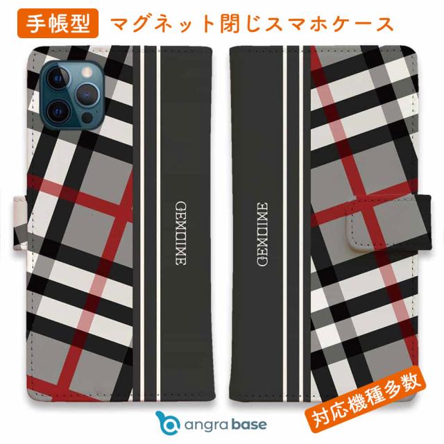 スマホケース 手帳型 カード収納 マグネット iPhone17 Pro Max iPhone Air iPhone16e iPhone16 Pro Max 16 Plus 15 Pro Max Xperia 10 VII Galaxy AQUOS ARROWS Pixel10 XL Genuine チェック柄 グレー&グレー