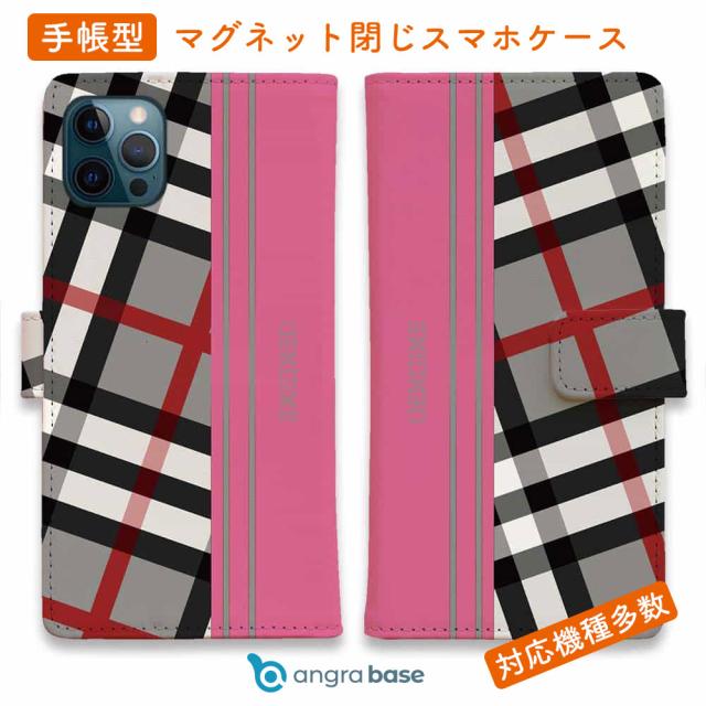 スマホケース 手帳型 カード収納 マグネット iPhone17 Pro Max iPhone Air iPhone16e iPhone16 Pro Max 16 Plus 15 Pro Max Xperia 10 VII Galaxy AQUOS ARROWS Pixel10 XL Genuine チェック柄 グレー&ピンク